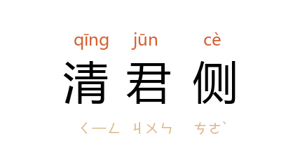⒈ 《公羊传·定公十三年》:“此逐君侧之恶人。”因以“清君侧”谓清除君主身旁的坏人。也指王国或藩镇起兵反对朝廷的一种政治斗争手段。