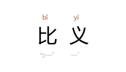 引《国语·楚语上》:“教之训典,使知族类,行比义焉。”《国语·楚语下》:“其知能上下比义,其圣能光远宣朗。”王引之 《经义述闻·国语下》:“以上三言‘比义’,义字皆当读为‘仪’,《説文》曰:‘仪,度也。’比仪者,比之度之也。”