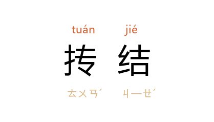 引《医宗金鉴·张仲景<伤寒论·太阳病中>》“甘草泻心汤方”集注引 程知 曰:“汗出解后,胃中不和,饮食摶结,故心中痞硬。”清 梁章鉅 《退庵随笔·摄生》:“况助以热药,摶结成胎,其藴毒必加数倍。”