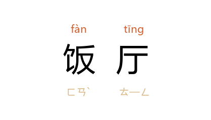 引《老残游记》第二回:“天已黑了,饭厅上饭已摆好多时了。”巴金 《在尼斯》:“招待会就在我住的那一家的客厅和饭厅里举行,不少的人参加了招待会。”