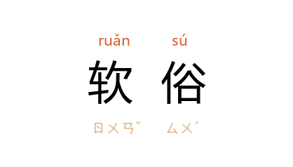 引宋 欧阳修 《归田录》卷二:“昌 花写生逼真,而笔法輭俗,殊无古人格致,然时亦未有其比。”《林则徐日记·道光二十五年二月二日》:“其匾额皆 喀城 书识 赵廷璧 所书,颇不輭俗。”