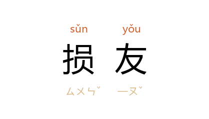 引《论语·季氏》:「益者三友,损者三友。友直、友谅、友多闻,益矣;友便辟、友善柔、友便佞,损矣。」