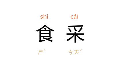 引《汉书·地理志下》:“周宣王 弟 友,为 周 司徒,食采於 宗周 畿内,是为 郑。”《后汉书·冯鲂传》:“其先 魏 之支别,食菜 冯城,因以氏焉。”《魏书·常景传》:“窃谓公主之爵,既非食菜之君;家令之官,又无纯臣之式。”清 陈梦雷 《解介士传》:“周 泰伯 入 吴,其子孙有 牟氏 实佐 之族,益蕃支庶,食采於 解,遂别为 解氏。”