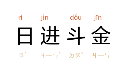 例如:「他开的餐厅,生意兴隆,日进斗金。」