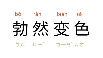 ⒈ 形容人因发怒生气而脸色大变。也作「勃然作色」、「勃然色变」。