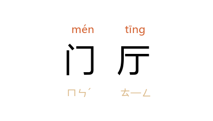 ⒈ 房屋的外门与内部之间的通道、过厅或房间;住宅的门廊或入口。