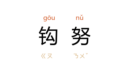⒈ 亦作“钩努”。汉字笔画之一。指“刀”、“匀”、“菊”等字中去掉“丿”的写法。