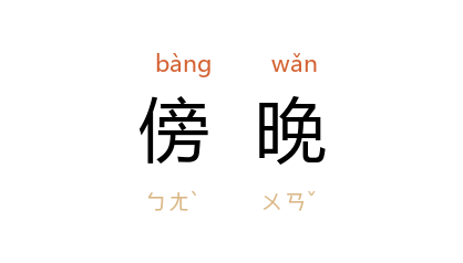 ⒈ 靠近晚上的时候。亦称“黄昏”