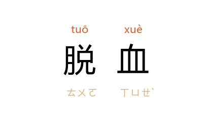 引《医宗金鉴·妇科心法要诀·血枯经闭》:“脱血过淫产乳众,血枯渐少不行经。”注:“失血过多,面与爪甲之色俱浅淡黄白,乃脱血病也。”