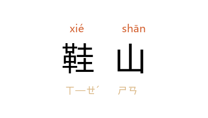 ⒈ 即 江西 九江 大孤山 的别称。山形似鞋,故称。 明 顾祖禹 《读史方舆纪要·江西三·九江府》:“大孤山 在府东南四十里……西面洪涛,一峯独耸。 唐 顾况 云:‘ 大孤山 尽 小孤 出’,盖 彭泽 之 小孤山 与此山相望也。山形似鞋,一名 鞋山。参见“大孤山”。