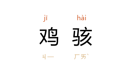 引《战国策·楚策一》:“乃遣使车百乘,献鸡骇之犀,夜光之璧於 秦王。”鲍彪 注引 葛洪 《抱朴子》:“通天犀中有一白理如丝,置米其上以饲,鸡见之惊,故名‘骇鸡犀’。”王念孙 《读书杂志·战国策二》“鸡骇”:“鸡骇之犀,当为骇鸡之犀。”晋 傅咸 《<犀钩铭>序》:“世称鸡骇之犀。闻之父常侍曰:‘犀之美者有光,鸡见影而惊,故曰骇鸡。’”