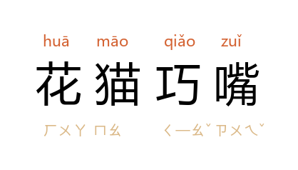 引《三宝太监西洋记通俗演义·第二五回》:「天师道:『那个听你这个花猫巧嘴。』照头就是一剑砍去。」