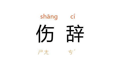 引《礼记·曲礼上》“知生者弔,知死者伤” 唐 孔颖达 疏:“若存之与亡并识,则遣设弔辞、伤辞兼行。若但识生而不识亡,则唯遣设弔辞,而无伤辞。若但识亡,唯施伤辞,而无弔辞也。”章炳麟 《国故论衡·正赍送》:“古者弔有伤辞,謚有誄,祭有颂,其餘皆祷祝之辞,非箸竹帛者也。”