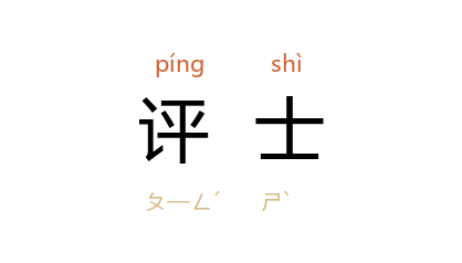 ⒈ 即评事。 明 吴应箕 《熹朝忠节死臣列传·周起元》:“万历 庚子,举乡试第一。旋第进士,令 浮梁,调 南昌,皆治最。内召,候考选。有某评士挟怨欲孽之。参见“评事”。
