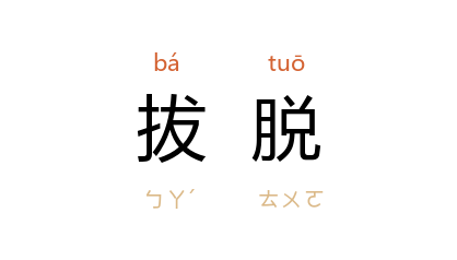 引《敦煌歌辞总编·归去来·宝门开》:“拔脱众生出爱河,出爱河。”清 蒲松龄 《聊斋志异·嫦娥》:“颠当 泣求拔脱。 嫦娥 乃掐其耳,逾刻释手, 颠当 憮然为间,忽若梦醒,据地自投,欢喜欲舞。”