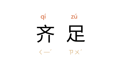 引《诗·小雅·车攻》“我马既同” 毛 传:“田猎齐足,尚疾也。”《汉书·扬雄传上》:“骋驊騮以曲囏兮,驴骡连蹇而齐足。”颜师古 注:“言使骏马驰騖於屈曲艰阻之中,则与驴骡齐足也。”三国 魏 曹丕 《典论·论文》:“咸以自骋驥騄於千里,仰齐足而并驰。”清 陈康祺 《郎潜纪闻》卷八:“贝子急上马,万骑齐足,顷刻至隘口。”