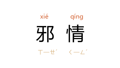 引《后汉书·爰延传》:“善人同处,则日闻嘉训;恶人从游,则日生邪情。”晋 葛洪 《抱朴子·至理》:“遣欢戚之邪情,外得失之荣辱。”南朝 梁 陶弘景 《冥通记》卷四:“里屋人自称 木道士 者,是 北星鬼官 所使,勿信之,以邪情亟惑人,坏人真气。”