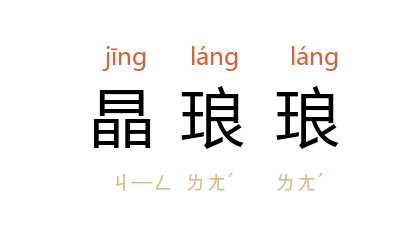 引茅盾 《子夜》十一:“﹝她﹞晶琅琅地叫道:‘ 冯老伯 !久违了,做得顺手么?’”茅盾 《子夜》十四:“吴为成 满脸忧虑似的恭恭敬敬坐在那里点着头,却用半只耳朵听隔壁的牌响和 林佩珊 的晶琅琅的艳笑。”