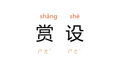 引《敦煌变文集·韩擒虎话本》:“衾虎 答曰:‘某弟二、要兵马库藏,赏设三军,即便却迴。’”唐 陆贽 《平朱泚后车驾还京大赦制》:“宜委所司,即约额支计各赐钱物赏设,仍委本节度准前后勑速条疏甄叙。”《资治通鉴·唐敬宗宝历元年》:“今朝廷久无处分,彼军不晓朝廷之意,欲效顺则恐忽授 从諫,欲同恶则恐别更除人,犹豫之间,若有姦人为之画策,虚张赏设钱数,军士覬望,尤难指挥。”胡三省 注:“赏设,犹言赏犒也。”