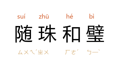 ⒈ 随侯珠与和氏璧的并称。传说古代随国姬姓诸侯见一大蛇伤断,以药敷之而愈;后蛇于江中衔明月珠以报德,因曰随侯珠,又称灵蛇珠。楚人卞和于荆山得一璞玉,先后献给武王、文王,均以为石,和以欺君罪被砍断两足;成王登位,使人剖璞,果得夜光宝玉,因命之曰和氏璧。事见《韩非子·和氏》、《淮南子·览冥训》。后以“随珠和璧”泛指珍宝或珍宝中的上品。