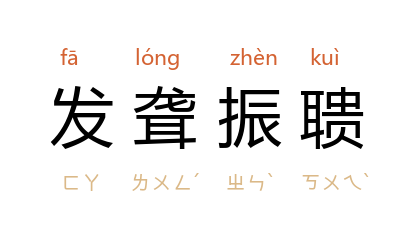 ⒈ 聩、聋:耳聋。发出巨响,让耳聋的人也能听到。喻指用言论文章使头脑糊涂,麻木不仁的人清醒过来。
