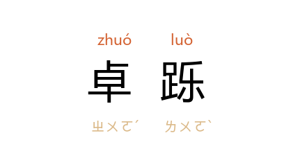 引汉 孔融 《荐祢衡表》:“淑质贞亮,英才卓躒。”《晋书·张载传》:“若夫魁梧儁杰,卓躒俶儻之徒,直将伏死嶔岑之下,安能与步骤共争道里乎!”黄侃 《礼学略说》:“自 唐 已后,歷 宋 至 元,礼学之书,亦可谓多矣。举其卓躒殊特,为治《礼》者所必宜参稽,则亦可数也。”