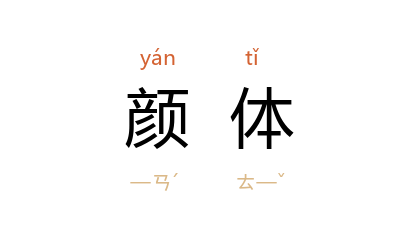 ⒈ 唐 书法家 颜真卿 的字体风格。其书法初学 褚遂良,后学 张旭 笔法,正楷端庄雄伟,气势开张;行书遒劲郁勃。古法为之一变,世称“颜体”。