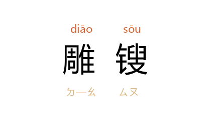 ⒊ 犹琢磨。彫鎪:雕刻,刻镂。