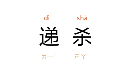 引《明史·兵志二》:“大寧 七万七百餘, 中都、山东 递杀, 河南 最少,仅一万四千有奇。”明 谢肇淛 《五杂俎·事部三》:“故宗藩之庶,递杀至於庶人,极矣。”清 阮葵生 《茶馀客话》卷三:“江 左酒人,推 顾侠君 嗣立 第一,居 秀野园 结社,家有酒器三,大者容三十觔,其两递杀,凡入社者,各先尽三器,然后入座。”