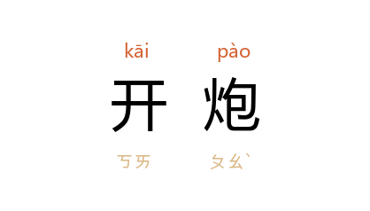 例如:「每次开会时,与会的委员都针对行政弊端,开炮抨击备询的官员。」
