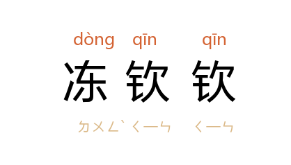 引元 李行道 《灰阑记》第三折:“蚤来到山坡直下,冻钦钦的难立扎。”元 苏彦文 《斗鹌鹑·冬景》套曲:“脚又滑,手又麻,乱纷纷瑞雪舞梨花。情绪杂,篋囊乏,若老天全不可怜咱。冻钦钦怎行踏!”元 关汉卿 《五侯宴》第三折:“风颼颼遍身麻,则我这篤簌簌连身战,冻钦钦手脚难拳。”
