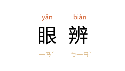 引《刘知远诸宫调·第一二》:「强人眼辨世中希,彦威乎亲天下少。」《董西厢·卷二》:「不惟眼辨与身轻,那更马疾手妙。」