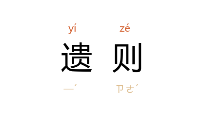 引《楚辞·离骚》:“虽不周於今之人兮,愿依 彭咸 之遗则。”王逸 注:“遗,餘也。则,法也。”南朝 齐 王俭 《褚渊碑文》:“思 卫 鼎之垂文,想 晋 钟之遗则。”唐 柳宗元 《祭穆质给事文》:“虔虔小子,夙奉遗则。”章炳麟 《文学说例》:“一二三四,百官所以纪数,则《管子》其遗则也。”
