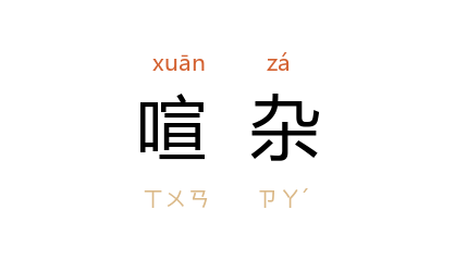 喧哗嘈杂。 南唐 刘崇远 《金华子杂编》卷下:“而 刘司空 晨夕端笏问我起居,其餘燕雀莫敢諠杂。”