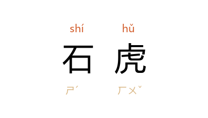 ⒈ 石刻的虎。古代帝王及贵族、官僚墓前的石刻群中往往包括石虎。