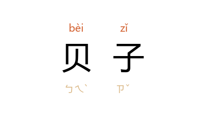 ⒉ 俗称用贝壳制成的钱币为「贝子」。