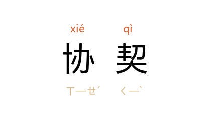 引《晋书·简文帝纪》:“羣后竭诚,协契断金。”《南史·宋纪上·武帝》:“同力协契,所在蠭起。”《周书·贺拔岳传》:“齐神武 既忌 岳 兄弟功名, 岳 惧,乃与 太祖 协契。”《资治通鉴·后汉高祖乾祐元年》:“守贞 自谓天人协契,乃自称 秦王。”