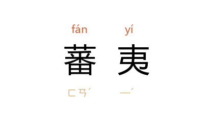 ⒈ 旧时中原人对外族或异国人的统称。蕃,通“番”。