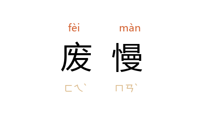 引《后汉书·卷四·孝和帝纪》:「今废慢懈弛,不以为负。」《五代史平话·晋史·卷上》:「誓修姪孙事祖之礼,不敢废慢。」