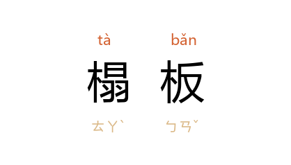⒈ 固定在回廊栏杆下部供人小憩的榻形长板。
