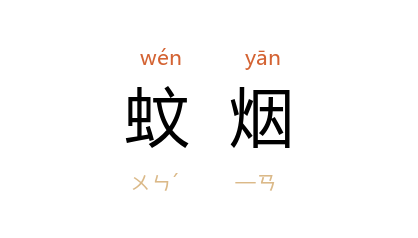 ⒈ 亦作“蚊烟”。即蚊香。参见“蚊香”。见“蚊烟”。