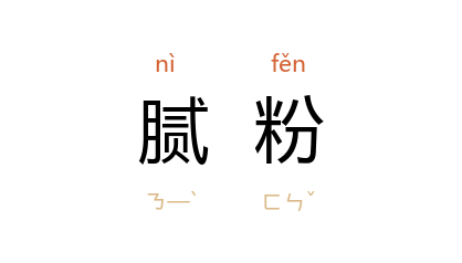 引唐 白居易 《戏题木兰花》诗:“紫房日照燕脂坼,素艳风吹腻粉开。”南唐 张泌 《满宫花》词:“腻粉琼粧透碧纱,雪休夸。”《武王伐纣平话》卷上:“不受寂淡,腻粉粧梳。官宦之家,内有胜玉女之颜。”