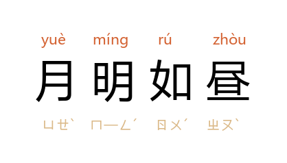 引《三国演义·第六回》:「走至一荒山脚下,时约二更,月明如昼。」清·洪升《长生殿·第一四出》:「不免袖了铁笛,来到骊山,趁此月明如昼,窃听一回。」