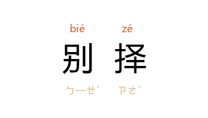 引北魏 贾思勰 《齐民要术·种枣》:“五六日后,别择取红软者,上高厨而曝之。”梁启超 《新史学·中国之旧史学》:“二曰难别择,即使有暇日,有耐性,徧读应读之书,而苟非极敏之眼光,极高之学识,不能别择其某条有用,某条无用。”