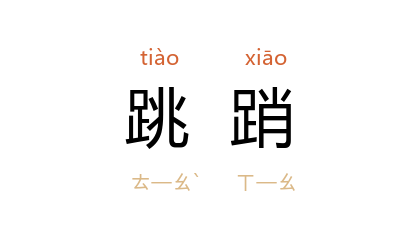 引《文选·傅毅<舞赋>》:“简惰跳踃,般纷挐兮。”吕向 注:“跳踃,动足貌。”清 厉鹗 《五月十五日客广陵马半槎招集小玲珑山馆为展重午之会出诸家锺馗画索题予得<出猎图>》诗:“前驱何所见,丑怪兼跳踃。”
