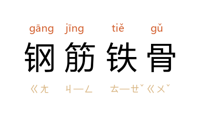 引曹禺 《半日的“旅行”》:“在一间放着垫子和各种各样举重器械的房间里,我遇见了一群钢筋铁骨的青年。”《人民文学》1977年第8期:“风餐露宿,转战南北,锤炼出一副钢筋铁骨,赤胆忠心。”