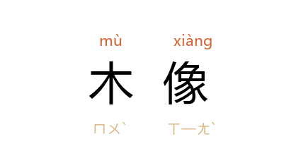 引晋 陶潜 《搜神后记》卷五:“孙恩 作逆时, 吴兴 分乱,一男子忽急突入 蒋侯庙,始入门,木像弯弓射之,即卒。”宋 葛长庚 《太平兴国宫记》:“木像入庙而流汗,粉楹卧地以发光。”《三国演义》第一〇四回:“若 司马懿 来追……等他来到,却将我先时所雕木像,安於车上,推出军前,令大小将士,分列左右。”