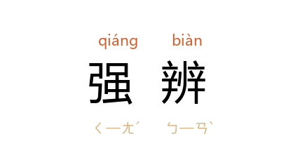 引《后汉书·党錮传·刘祐》:“闲练故事,文札强辨,每有奏议,应对无滞。”宋 罗大经 《鹤林玉露》卷十:“荆公 乃曰:‘ 伊尹 五就 汤,五就 桀,亦可谓之非纯臣乎?’其强辨如此。”清 管同 《楚昭王论》:“彼其初既目覩其君之穷蹙而不顾,则苟非挟有强辨,亦安敢贸贸然再至其前?”