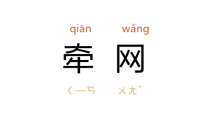 引元 洪希文 《仙邑馆所归溪行书触目》诗:“短堑插篱防鹿豕,小舟牵网截鱼虾。”明 何良俊 《四友斋丛说·史十》:“其寻常河港与人牵网,亦取利一、二十两。”