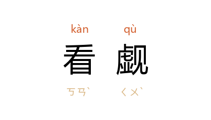引《五代史平话·梁史·卷上》:「太宗待觑他算个什么文字,袁天纲进前将太宗背推住,叫:『陛下!不要看觑!』」